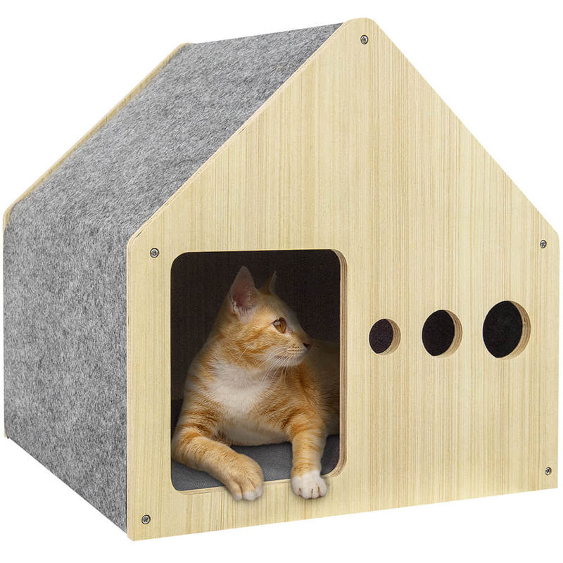木ペット家具の流行の設計および快適なベッドの表面が付いている木のキャット リターのテントのベッドはあなたの猫に優秀な休息の経験を提供する。自宅でまたはペット店に、このテントのベッドは慰めおよび平和のあらゆる時を楽しむ猫のための特別な場所であるかどうか。同時に、テントそっくりの設計はまた彼らがそれのそして所属安心感を楽しんでもいいように猫の私用スペースの愛を満たすことができる。