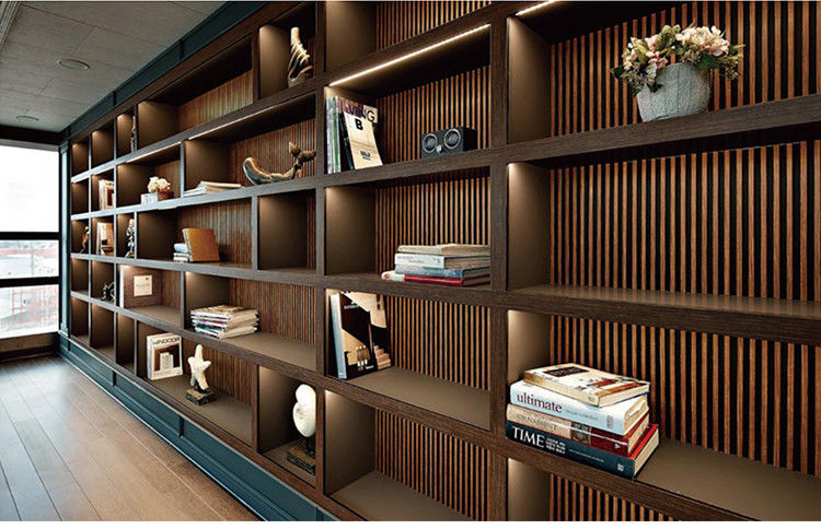 商業場所:壁パネルはホテルのロビー、オフィス ビル、ショッピング モール、等のような商業場所の装飾のためにまた適している。その独特な設計および木穀物の効果は顧客の注意を引き付ける商業場所のための上限の大気そして専門のイメージを生成できる。