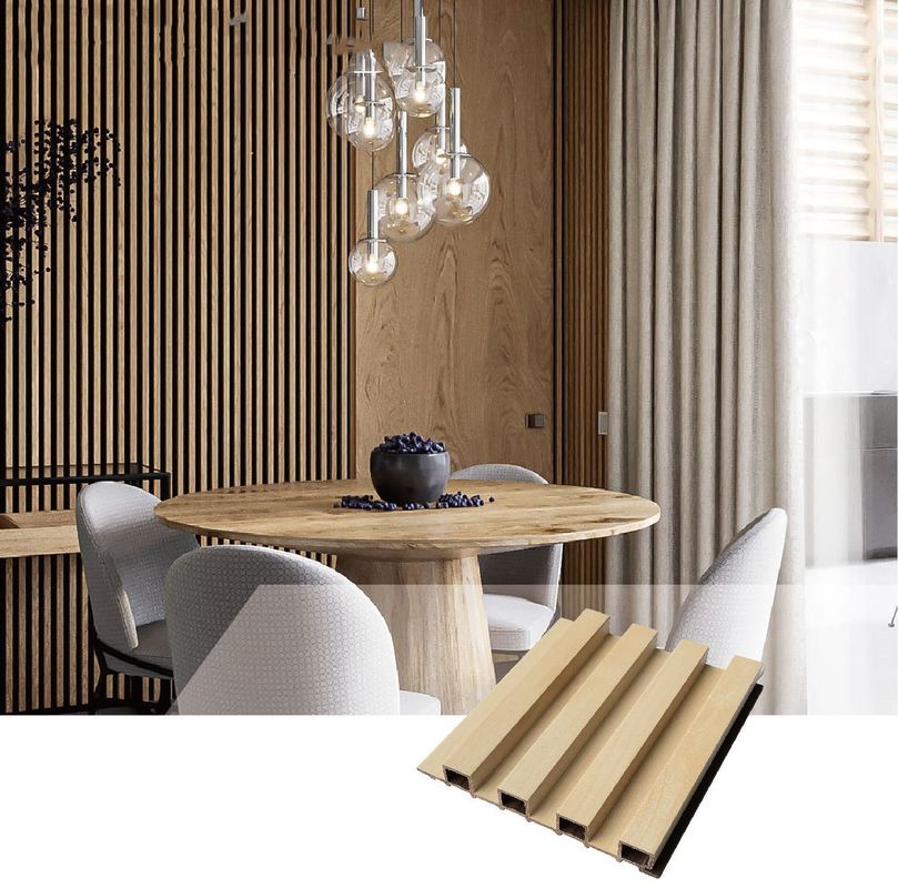 ひびの抵抗のグリルのクラッディング木穀物はパネルの壁のクラッディング ポリ塩化ビニールWPCの内壁のパネルにフルーティングを施した