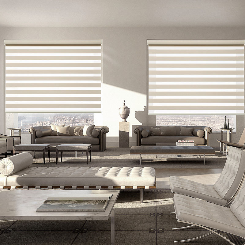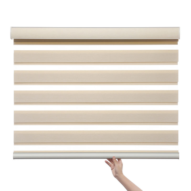 二重ブラインド:子供の安全なコードレスばね制御倍のブラインドは通常アルミ合金かプラスチックから成っている2つのブラインドの構造を、使用する。この設計は両方にカーテンがライトを調整し、プライバシーを提供するようにする。
