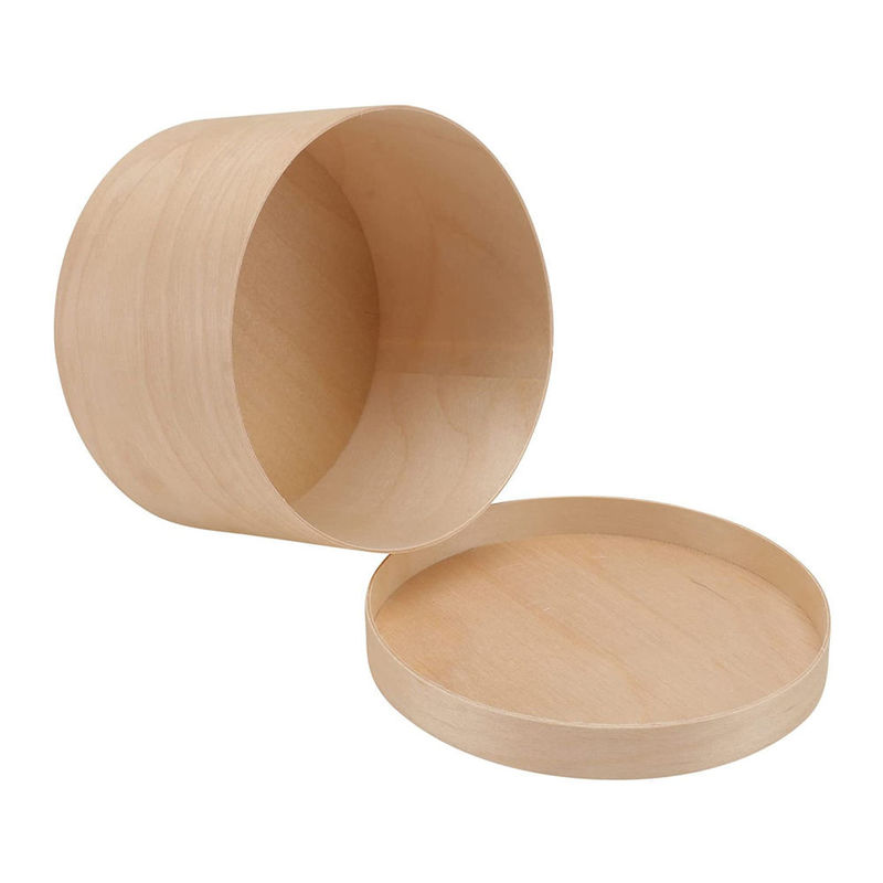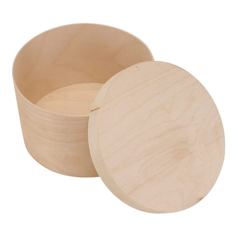 ふたが付いている未完成の円形の木箱性質および美の完全な融合