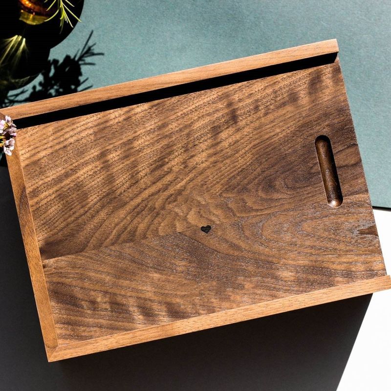 良質木:プッシュ プルふたが付いている各々の切り分けられた木箱は良質木から成っていて、木の自然な質そして元の色を維持する。