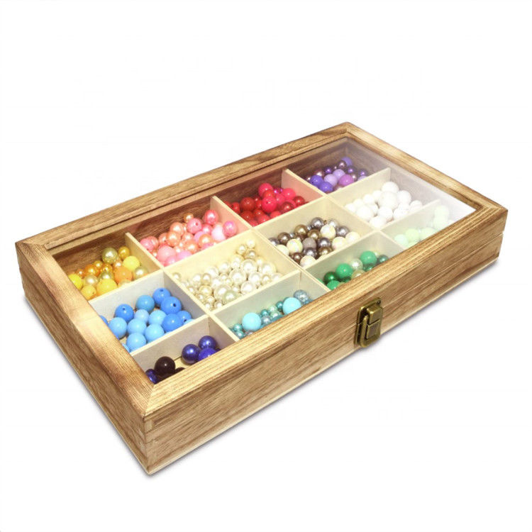 | 製品名 | 12のコンパートメント自然な貯蔵のティー バッグの注文のギフト用の箱の固体オルガナイザーの透明なふたが付いているタケ木の茶箱 |