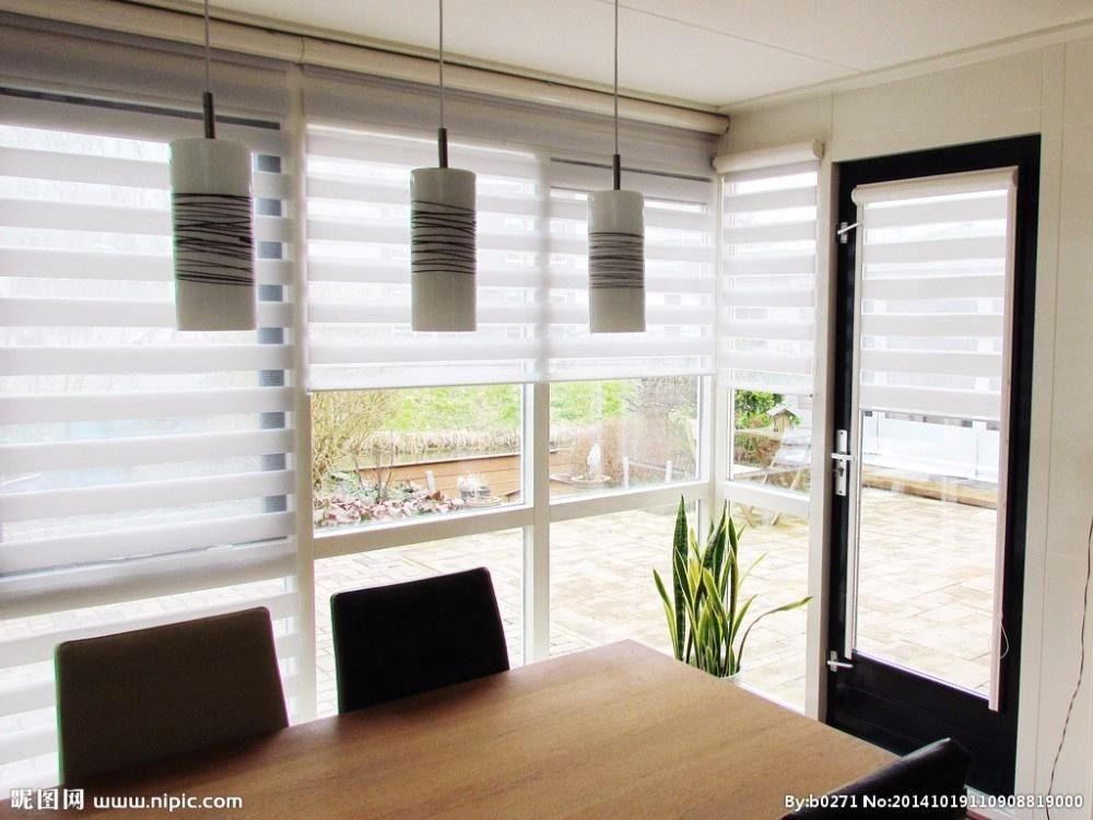 レストランおよび喫茶店:手動巻上げ式ブラインドはまたレストランのような場所の普及した選択および喫茶店である。ルーバーの角度の調節は快適な食事の大気を作成するために食事の環境のライトそしてプライバシーを調節できる。